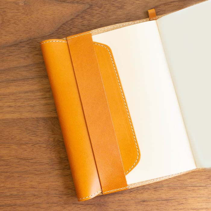 左側が折り返すタイプのフリーポケットになっているので、色々な厚みの本がしっかり収まります。